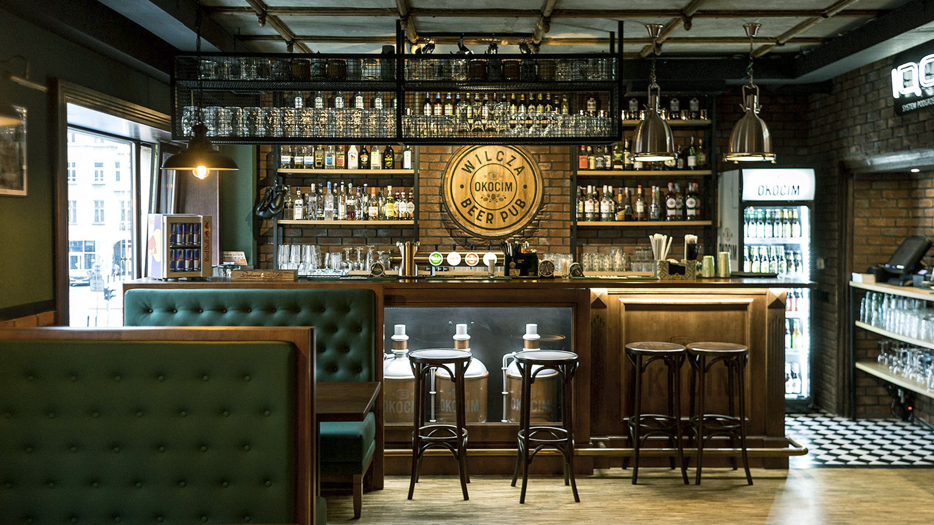 Wilcza Okocim Beer Pub to pierwszy i jedyny w Polsce flagowy lokal Browaru Okocim. Mieści się we wnętrzach posiadających niezwykle bogatą historię na gastronomicznej mapie Stolicy - w dawnej przestrzeni słynnego „Baru pod Kurantem", który jako pierwszy w powojennej stolicy podawał grzane wino z wuzetką. Wysoką na dwie kondygnację kawiarnię, opisaną w książce Leopolda Tyrmanda „Zły", zaprojektowała wówczas Xymena Zaniewska.